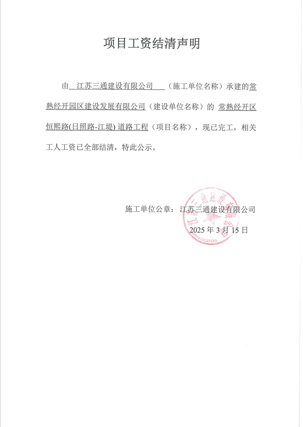 常熟经开区恒熙路(日照路-江堤) 道路工程