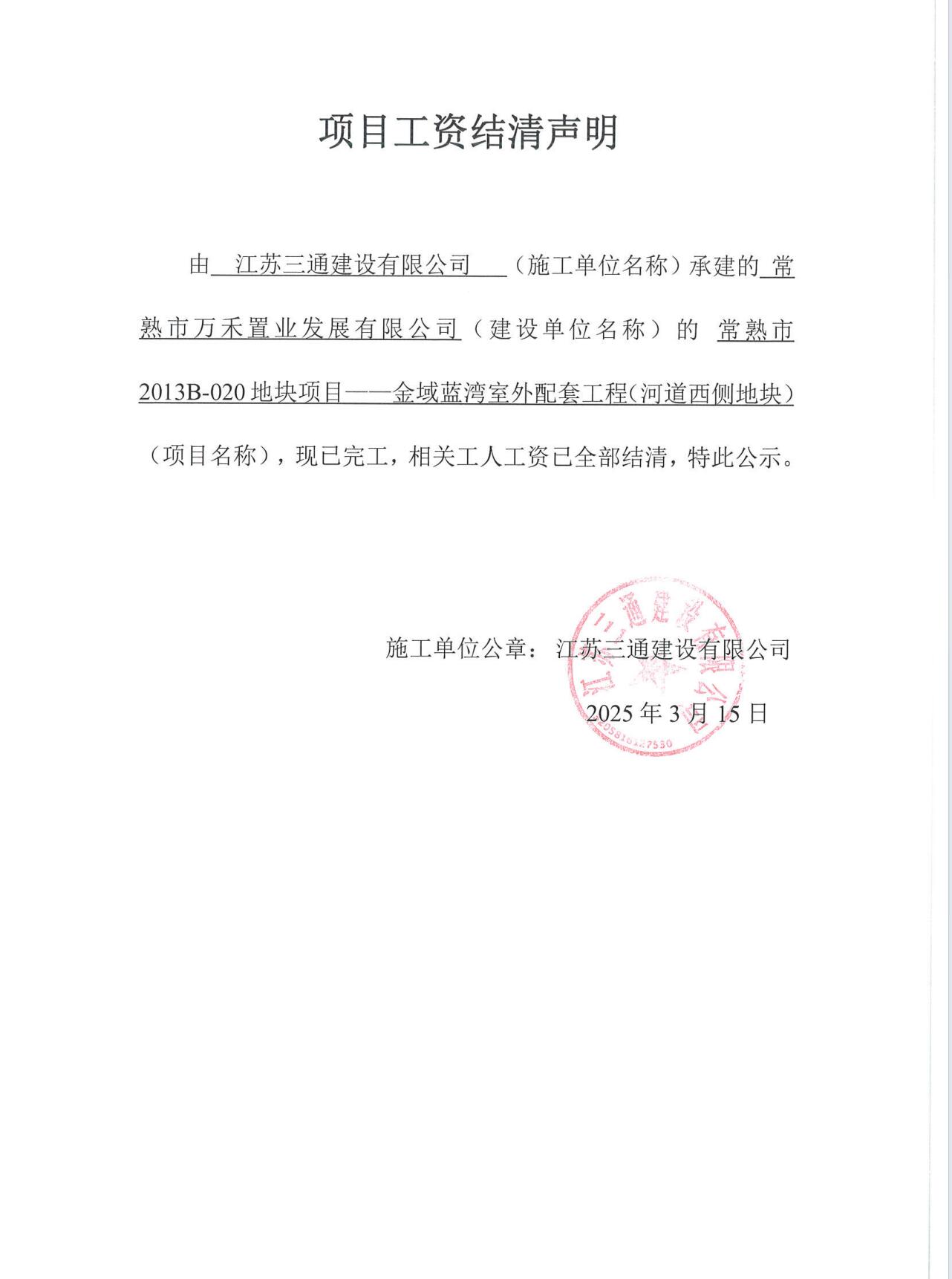 常熟市2013B-020地块项目—金域蓝湾室外配套工程(河道西侧地块)