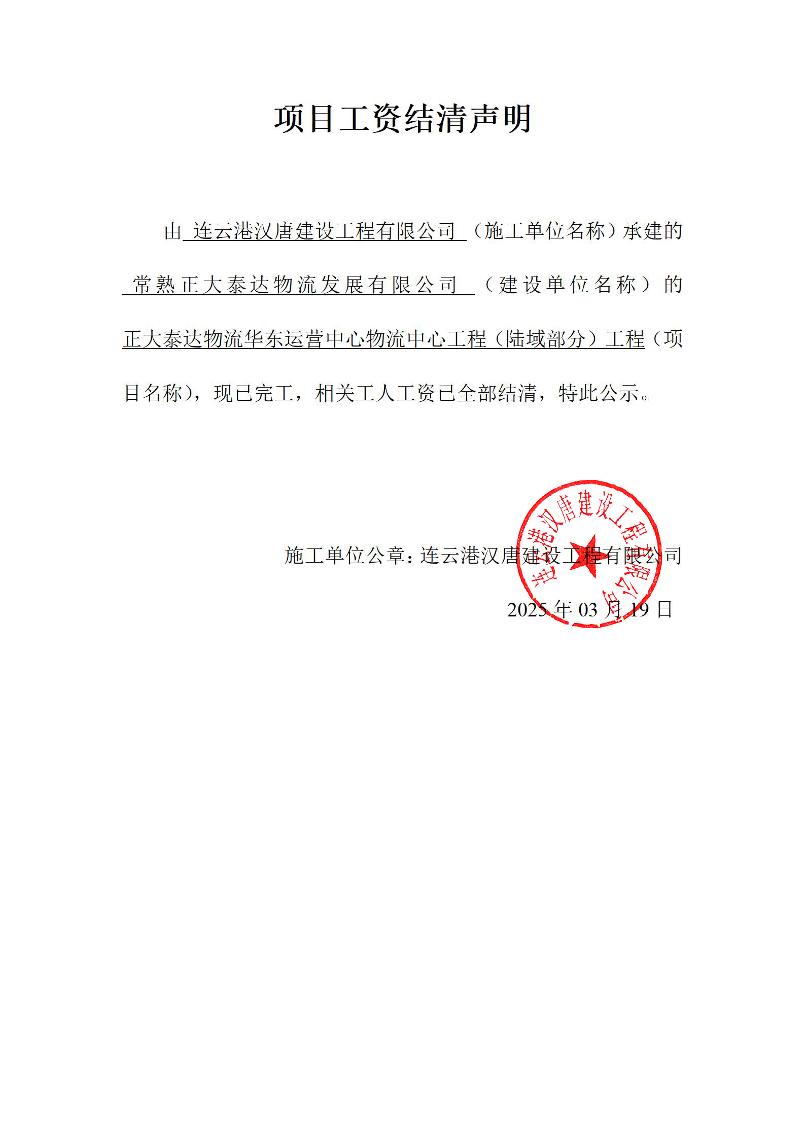 正大泰达物流华东运营中心物流中心工程(陆域部分)工程