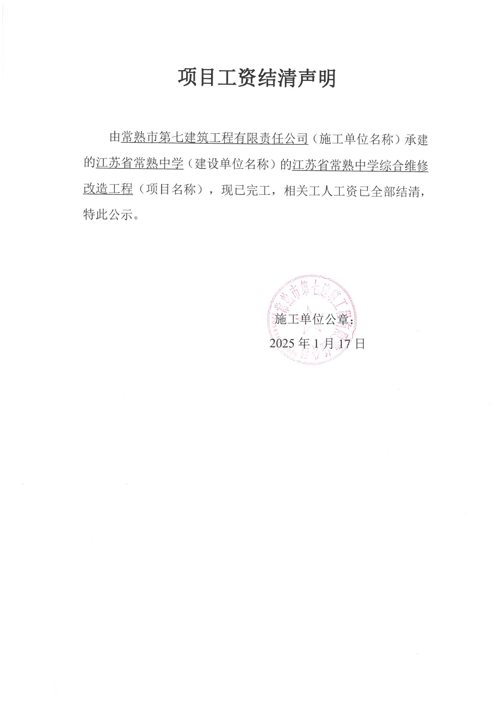 常熟市第七建筑工程有限责任公司