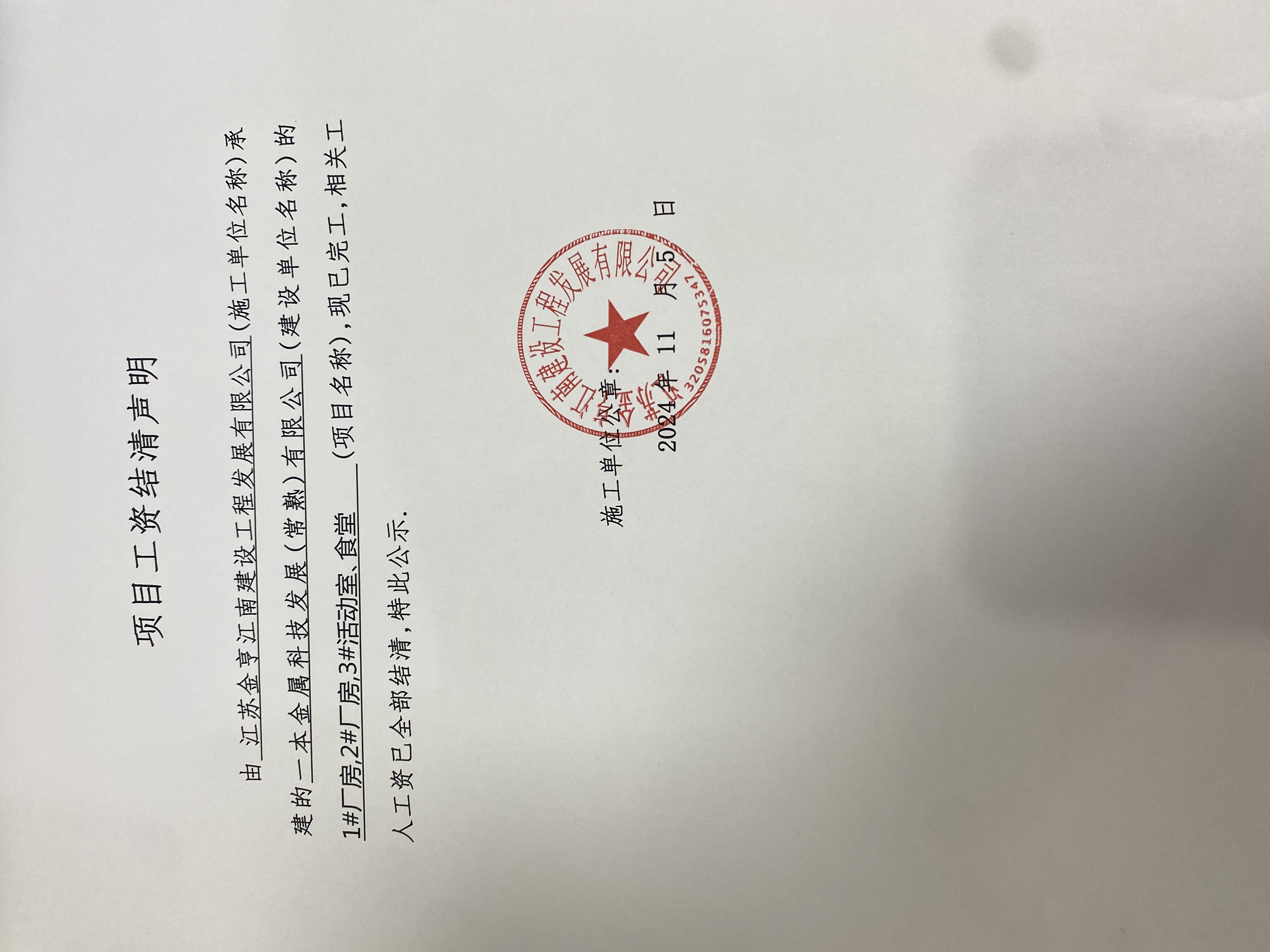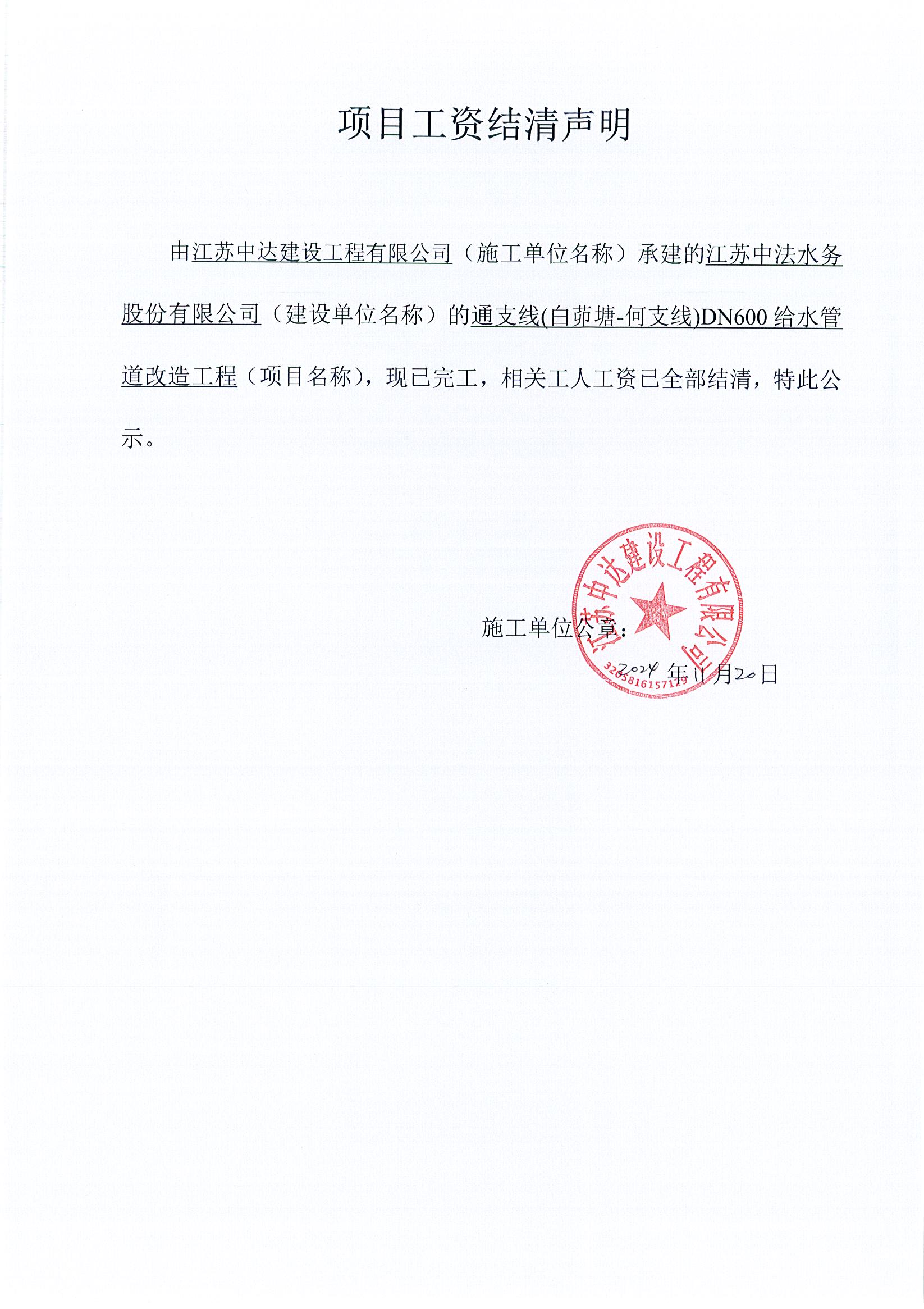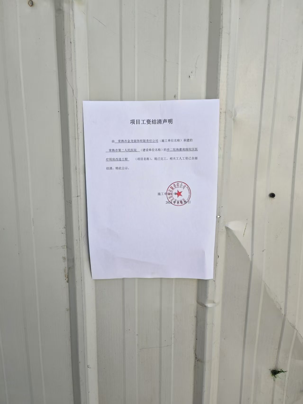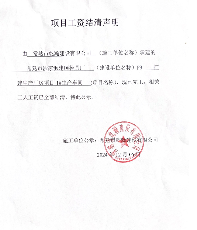 项目工资结清支付公示