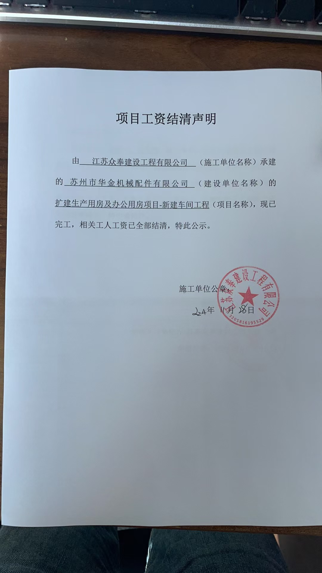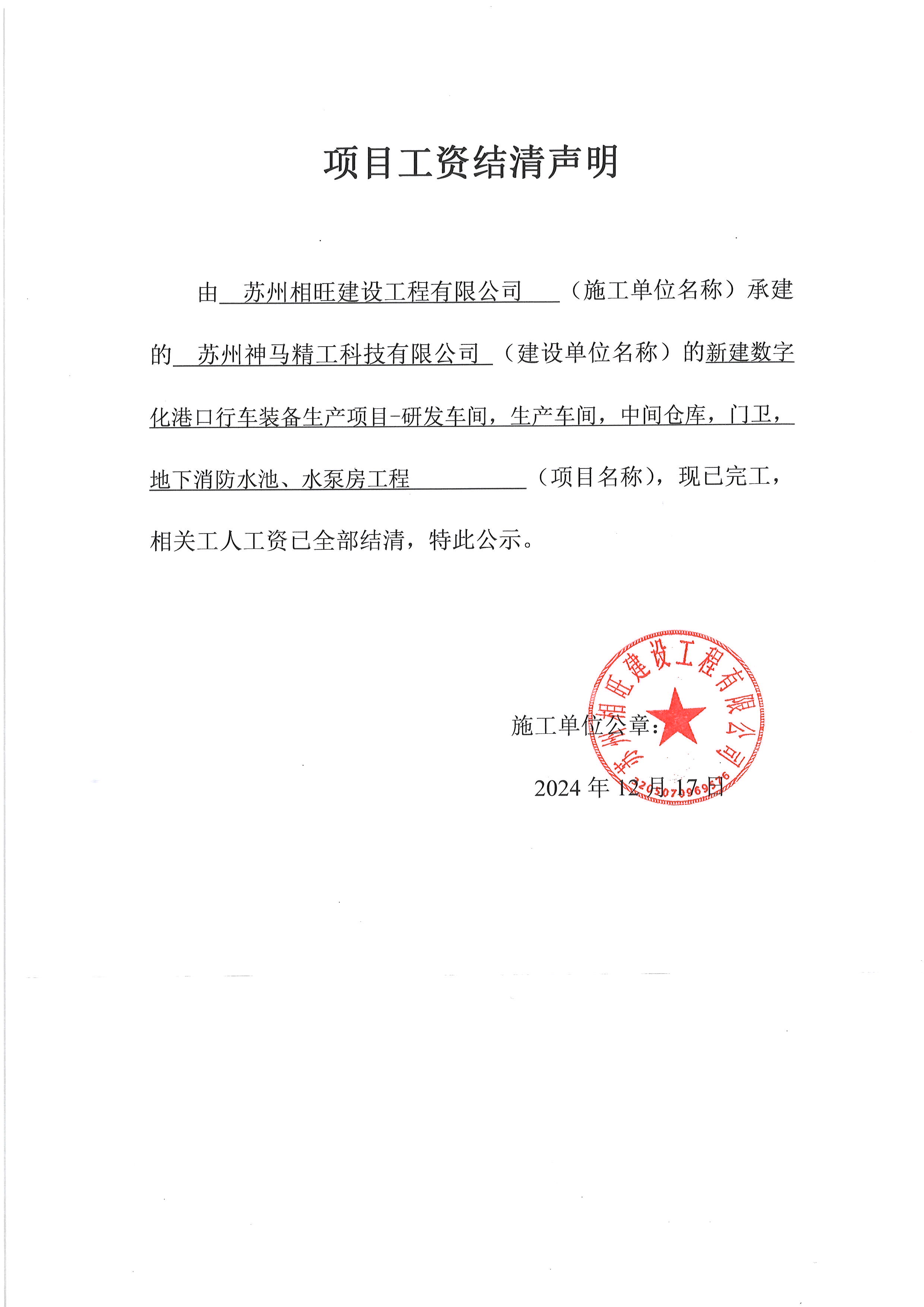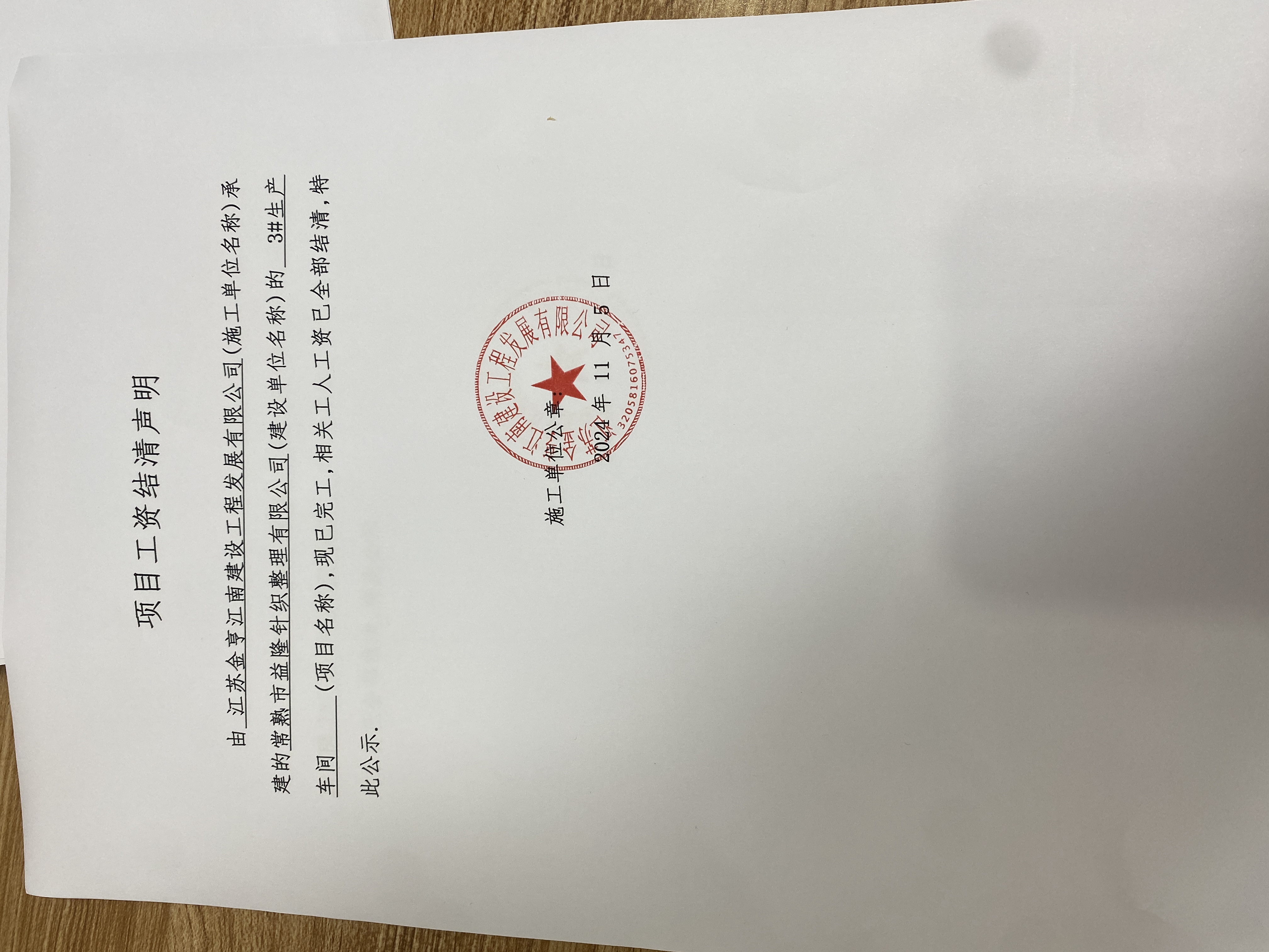 项目工资结清支付公示