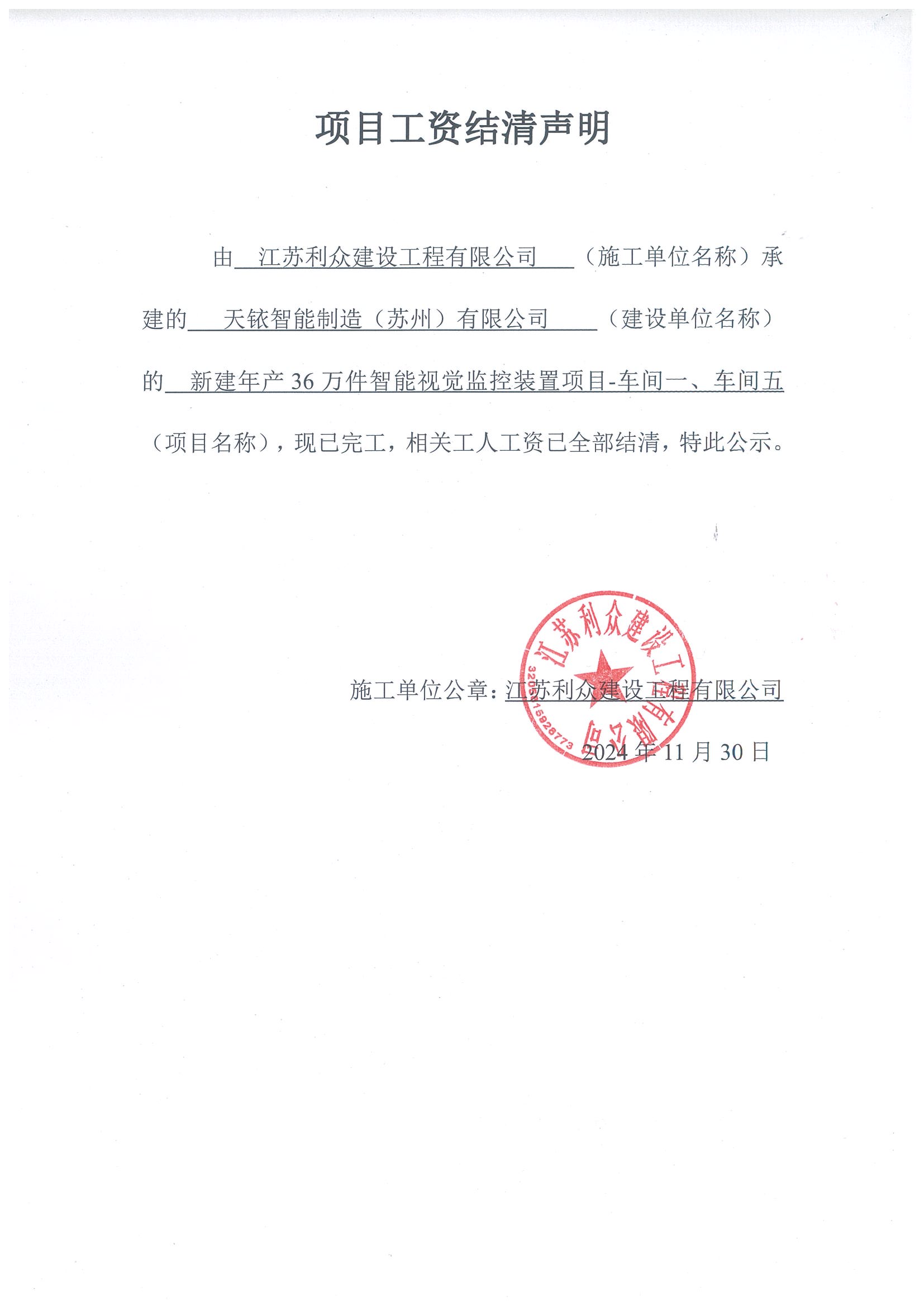 江苏利众建设工程有限公司