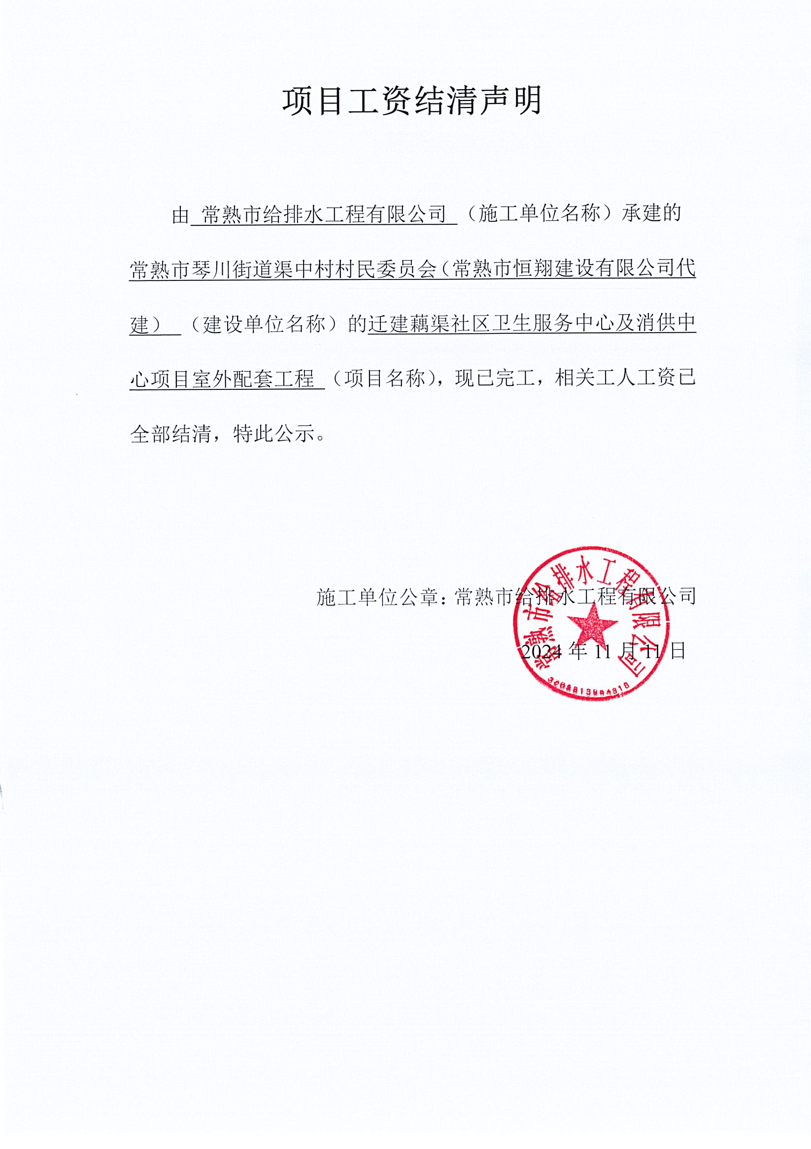 常熟市琴川街道渠中村村民委员会(常熟市恒翔建设有限公司代建)