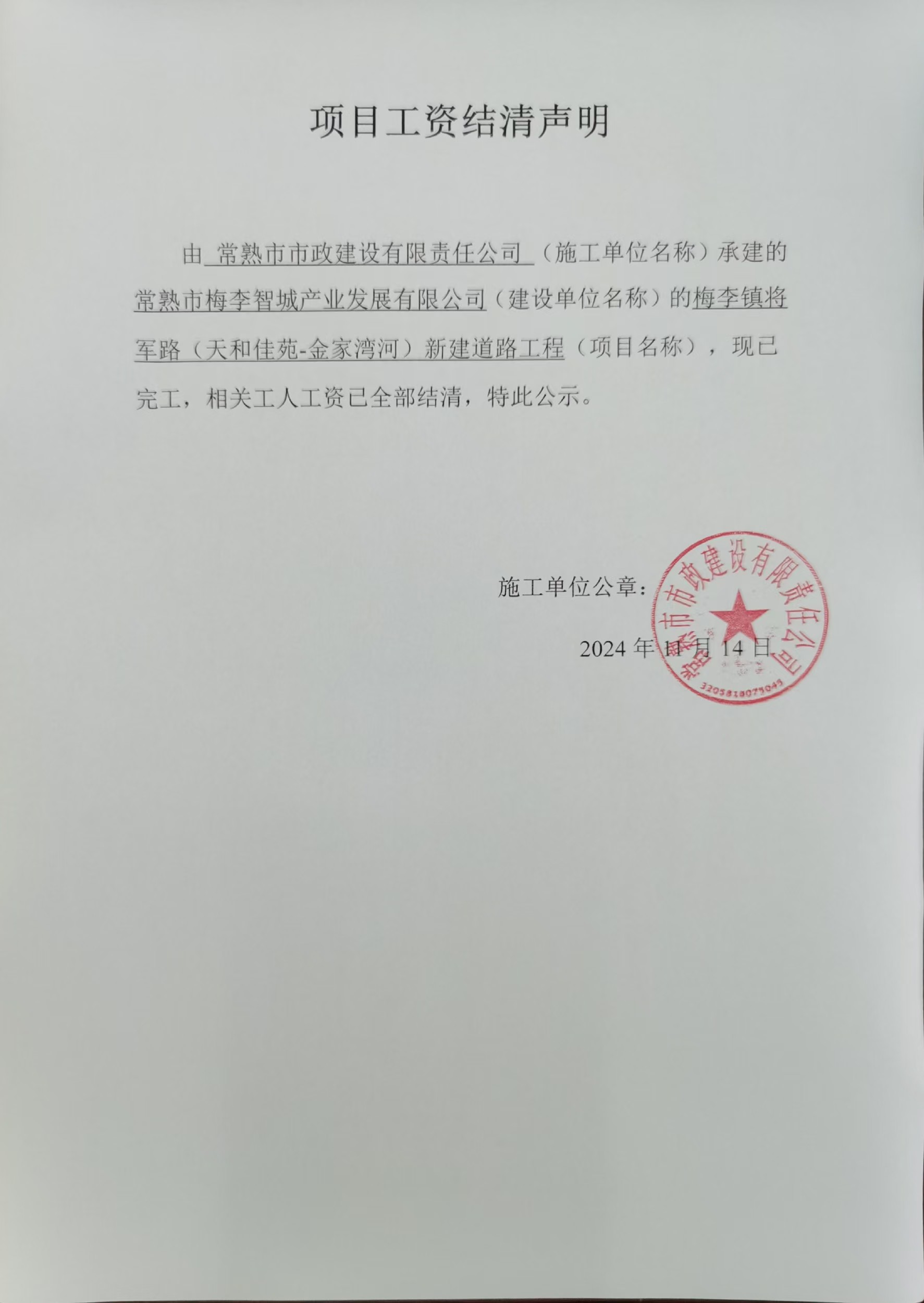 梅李镇将军路(天和佳苑-金家湾河)新建道路工程