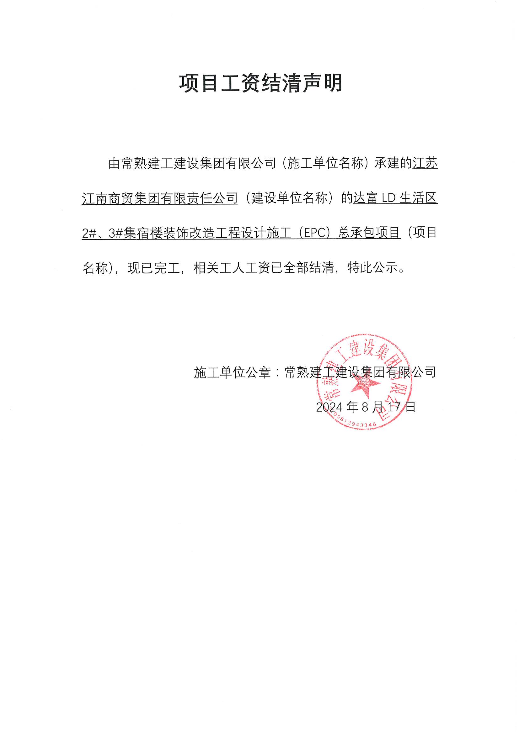 达富LD生活区2#、3#集宿楼装饰改造工程设计施工(EPC)总承包项目