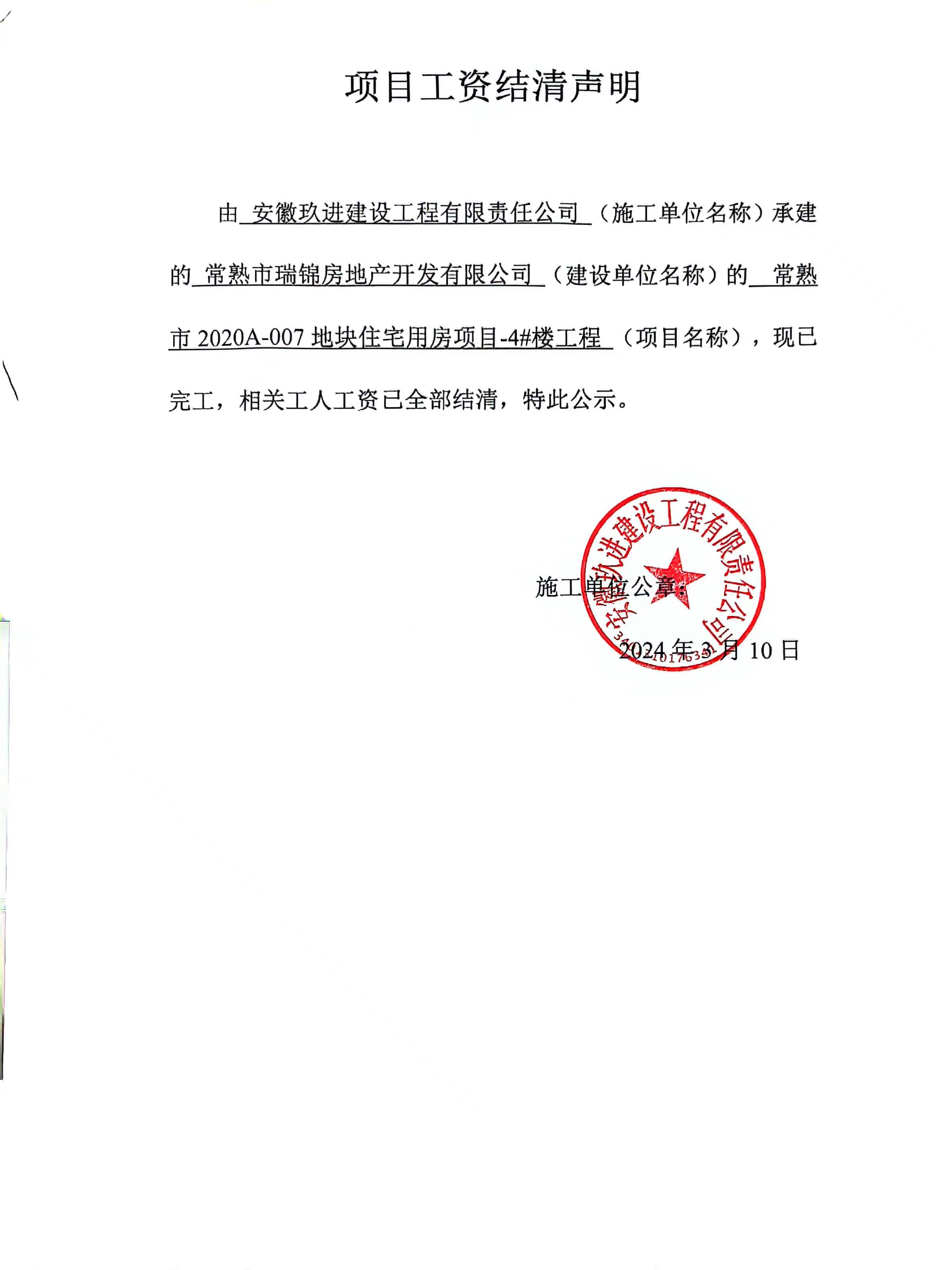 常熟市2020A-007地块住宅用房项目-4#楼工程