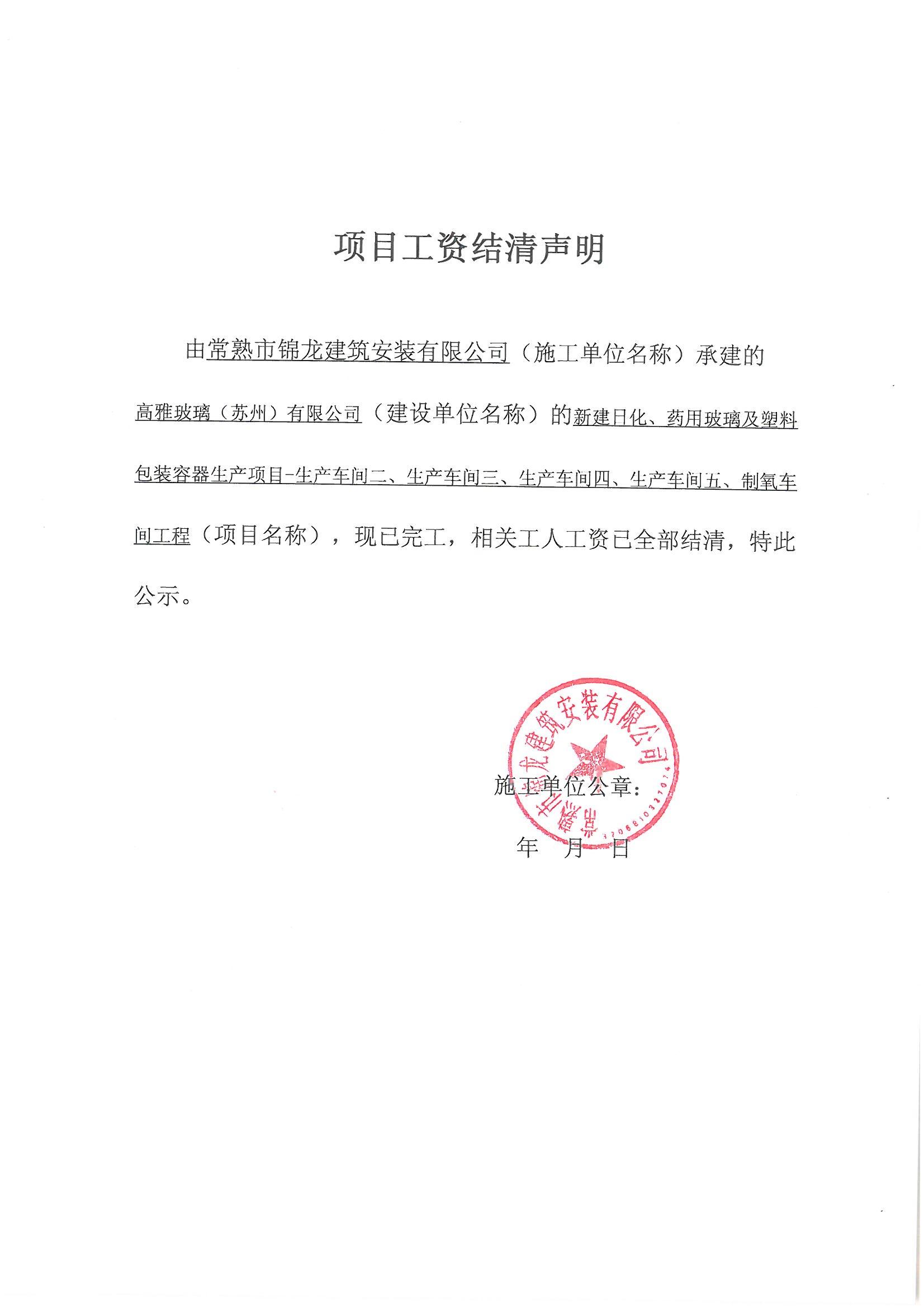 新建日化、药用玻璃及塑料包装容器生产项目-生产车间二、生产车间三、生产车间四、生产车间五、制氧车间工程