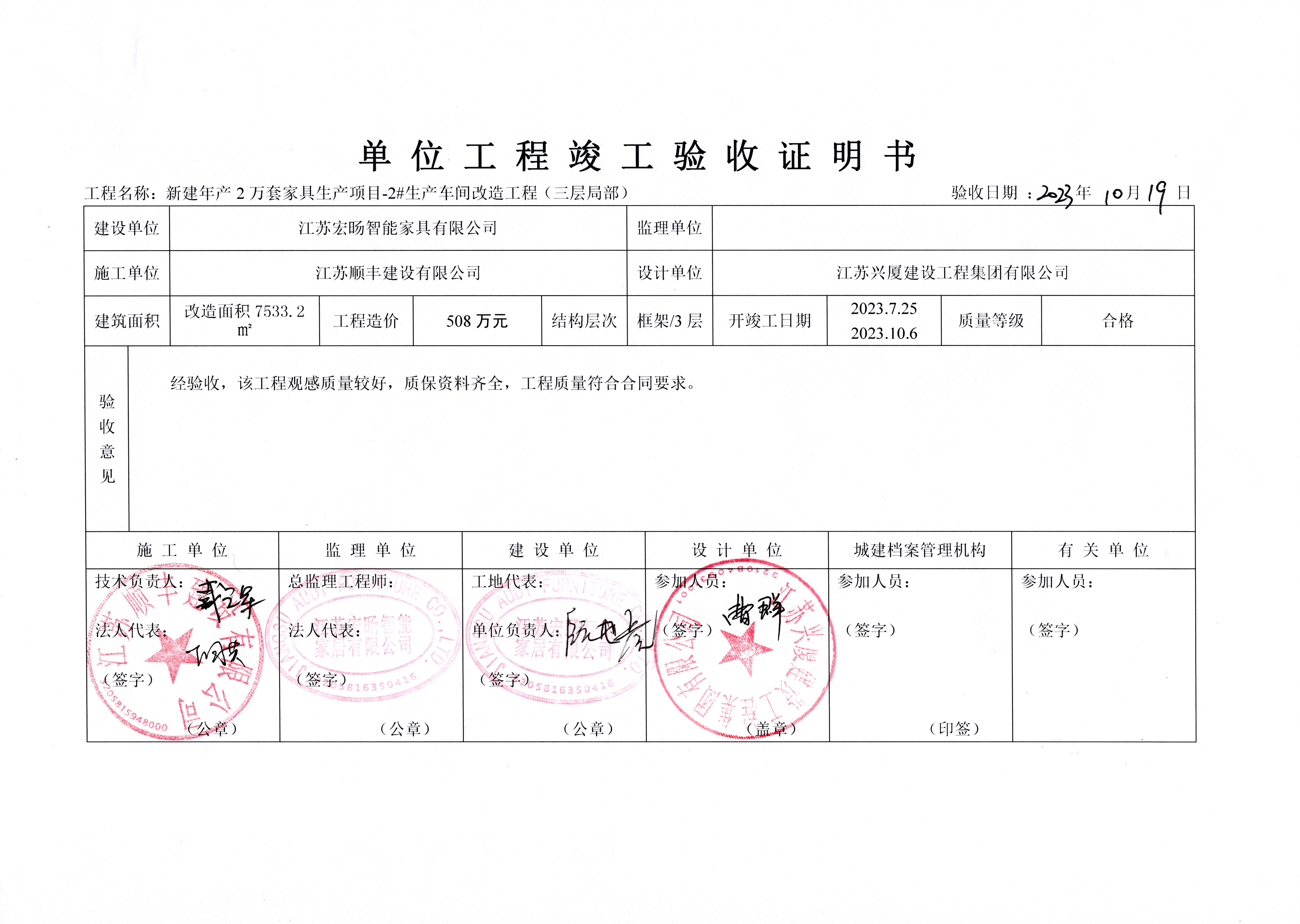 新建年产2万套家具生产项目-2#生产车间改造工程(三层局部)