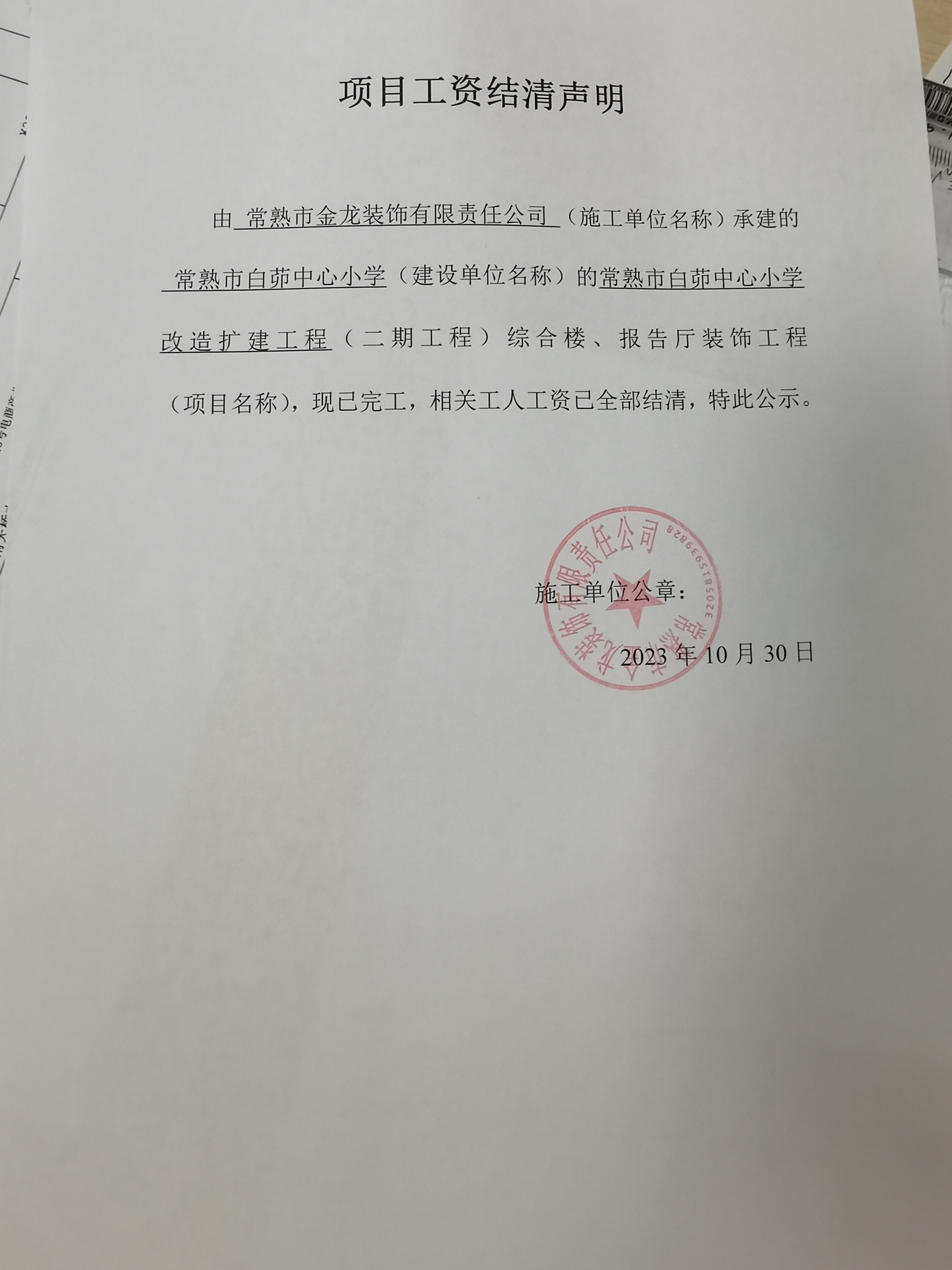 常熟市白茆中心小学改造扩建工程(二期工程)综合楼、报告厅装饰工程