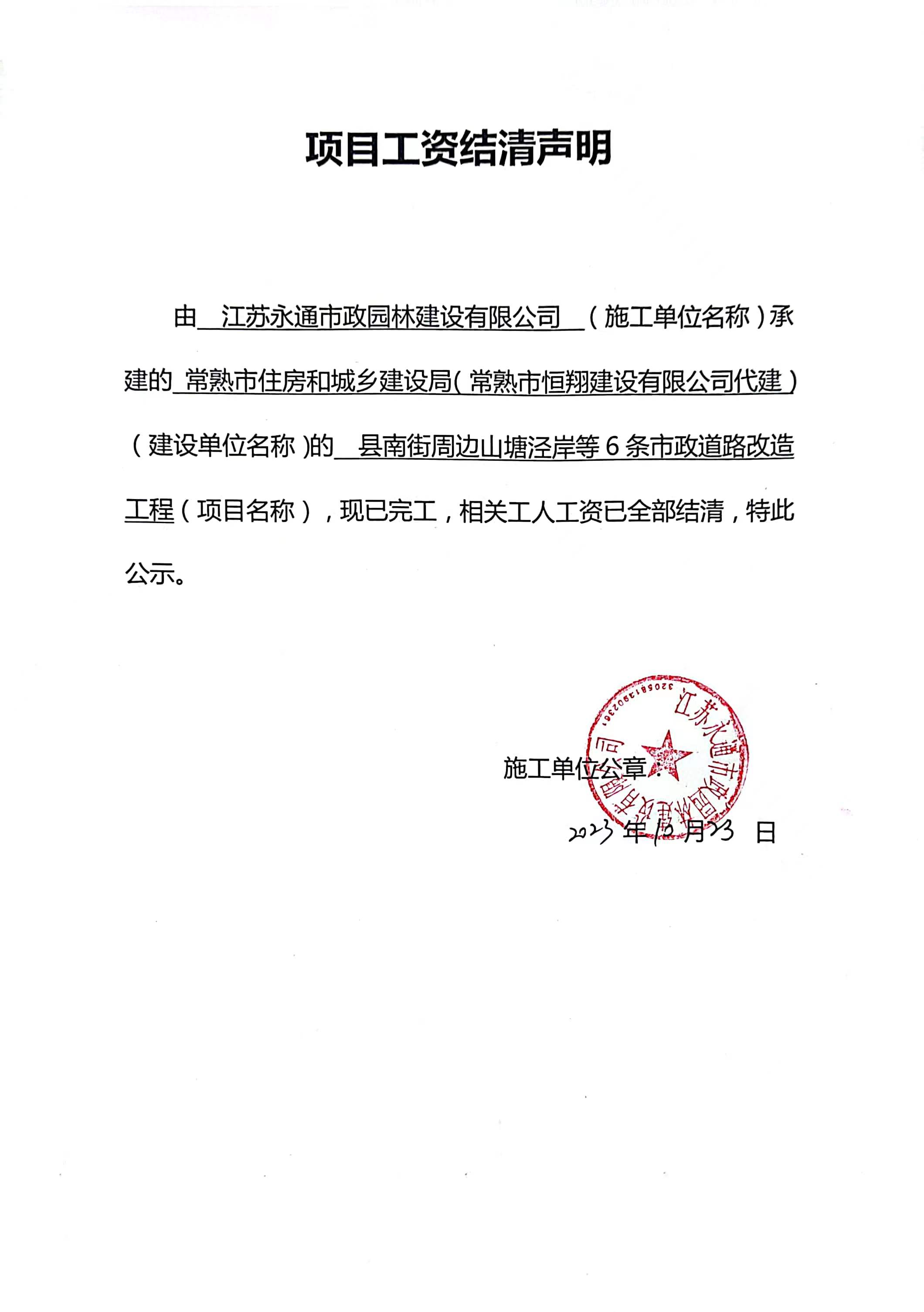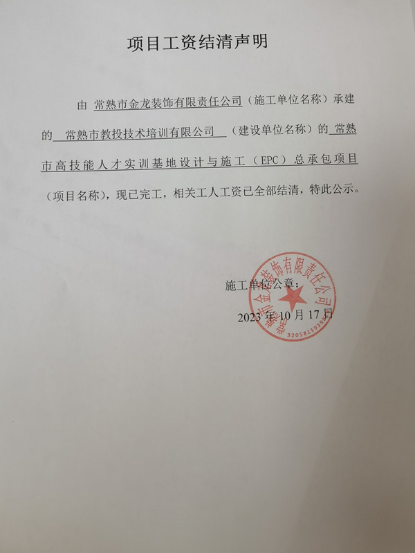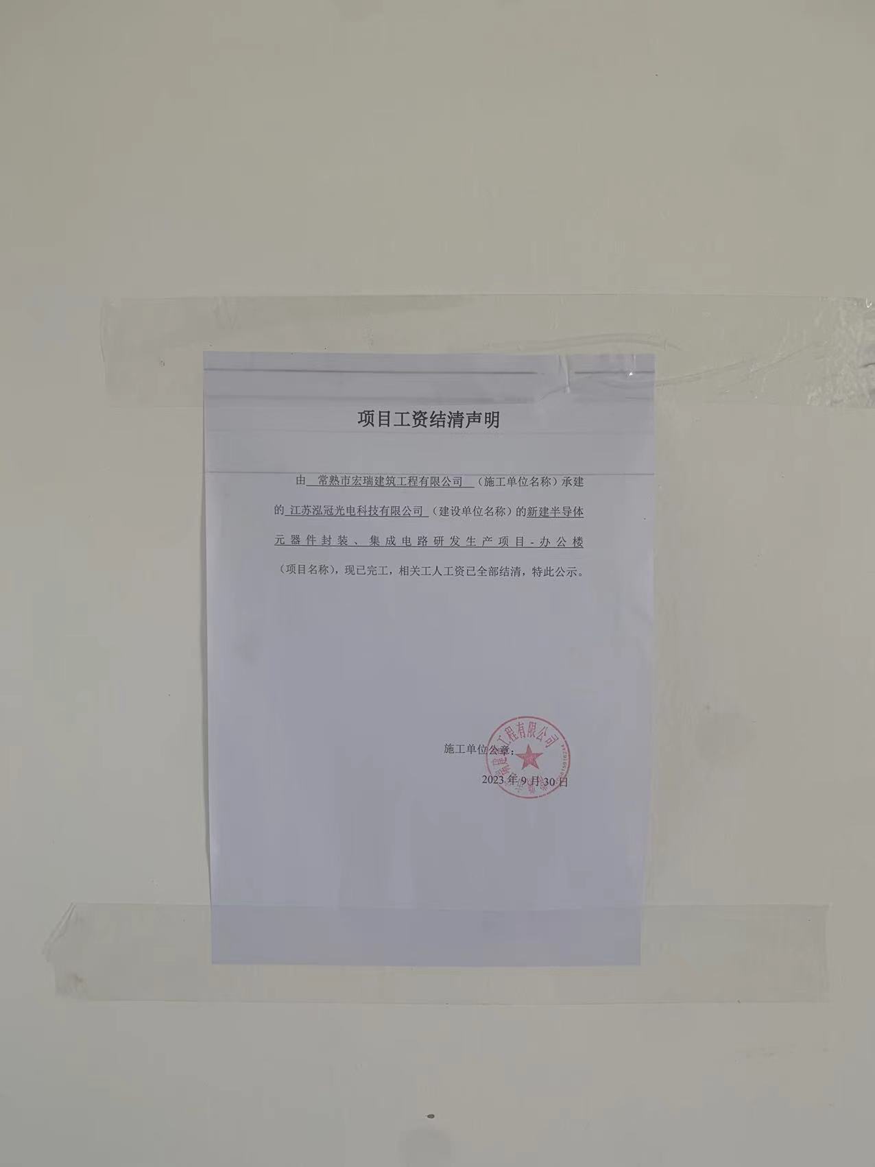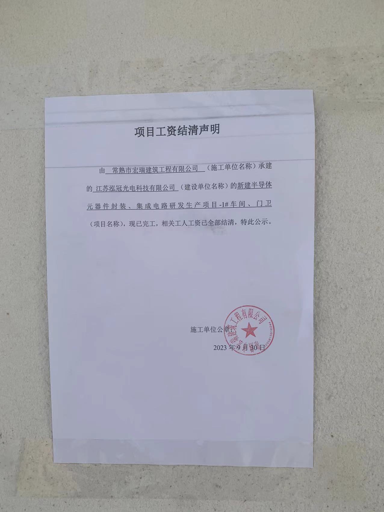 项目工资结清支付公示
