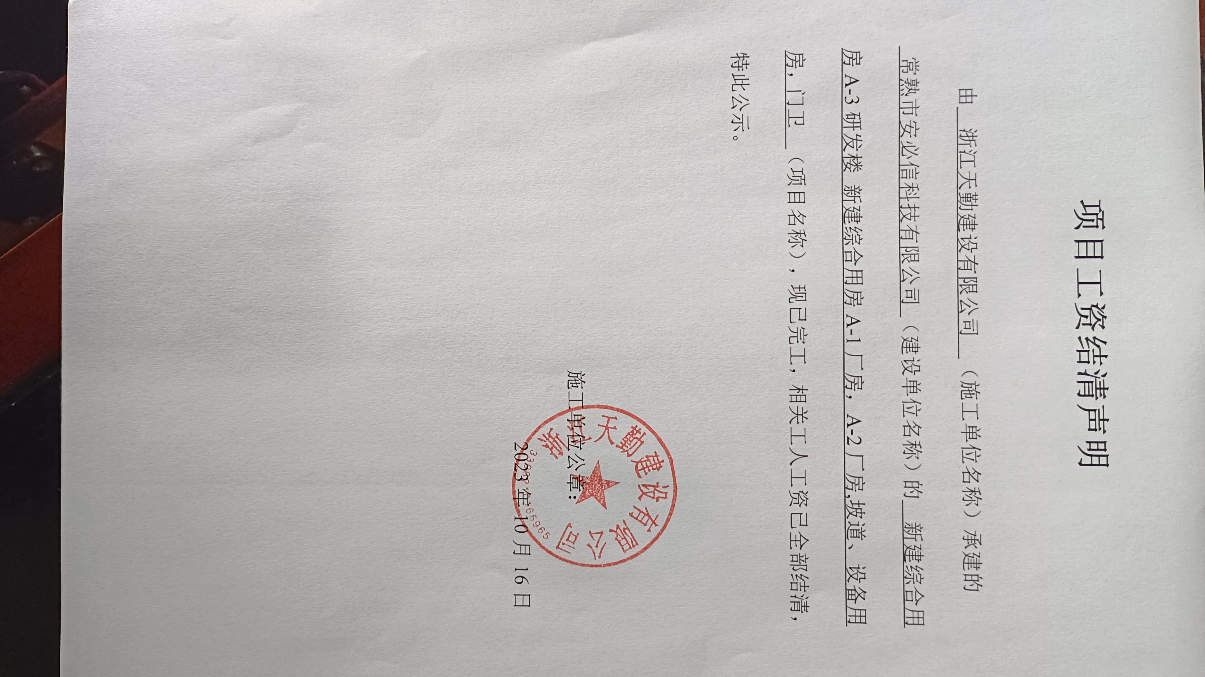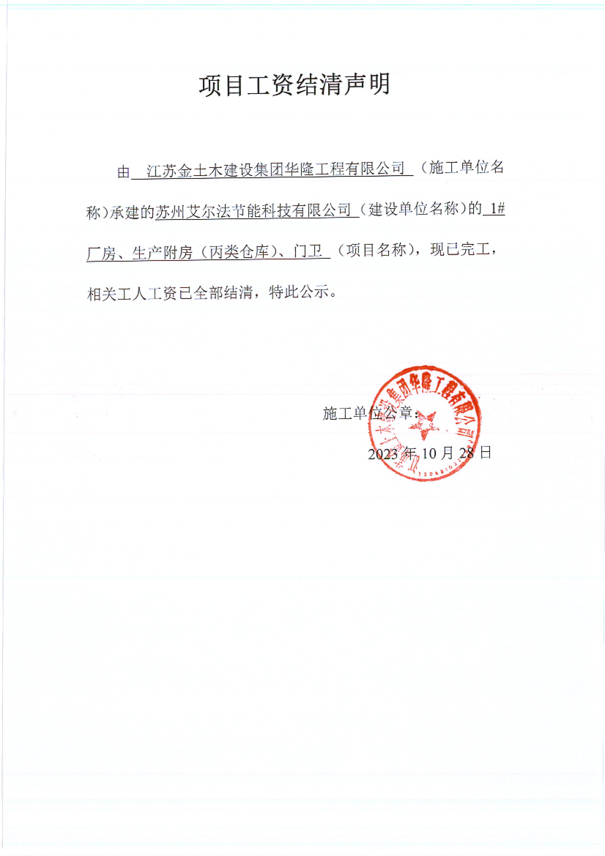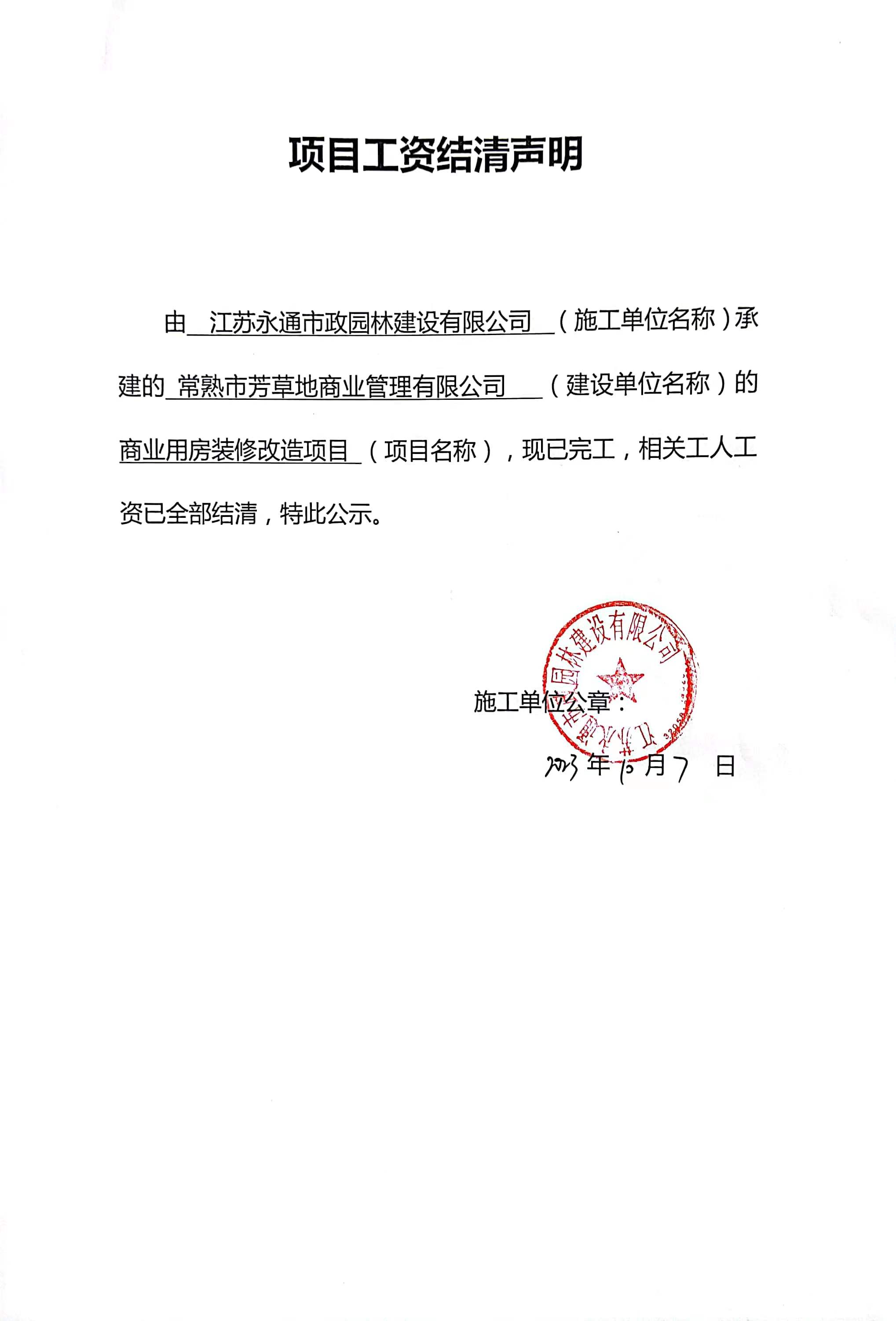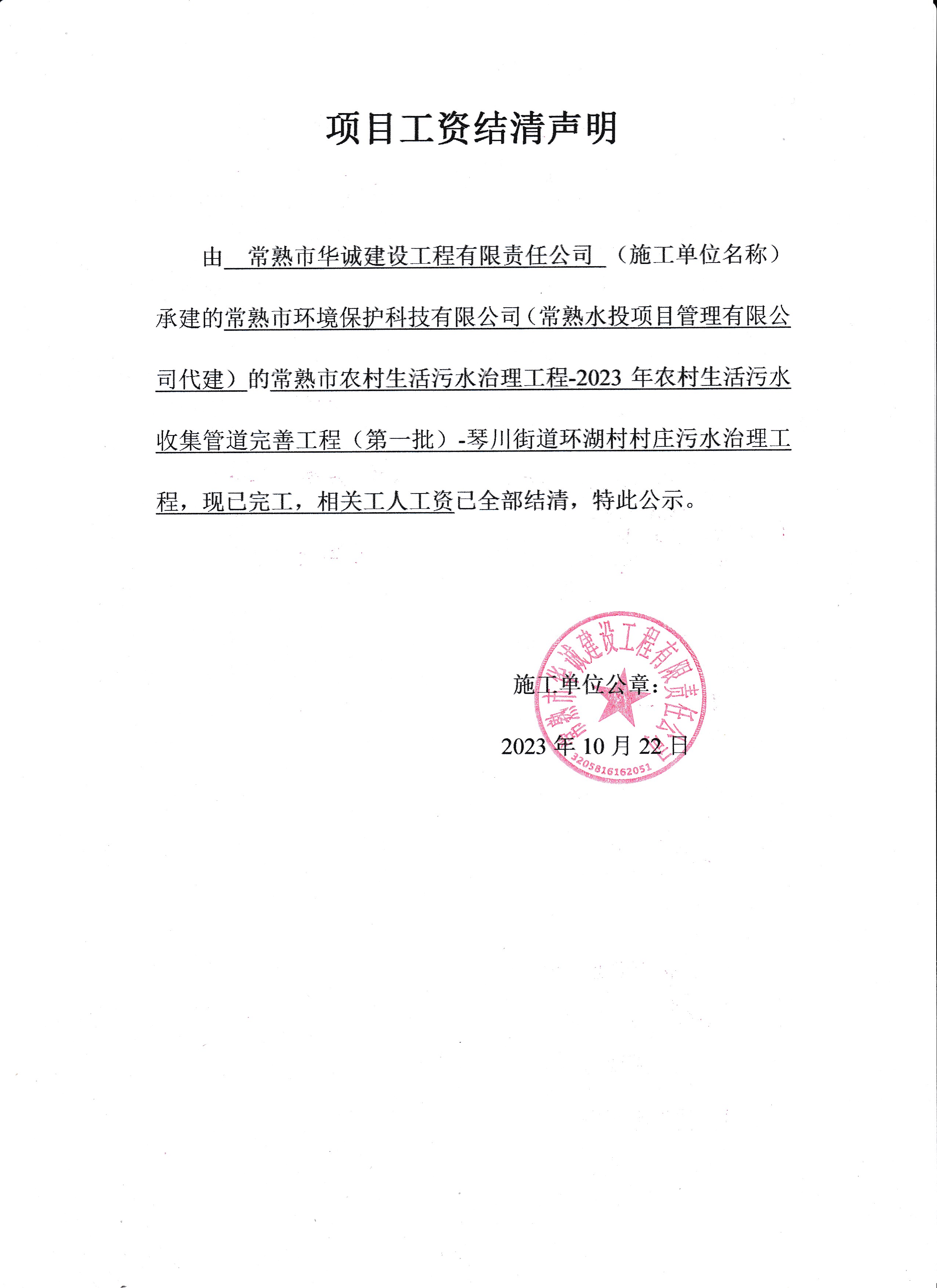 项目工资结清支付公示