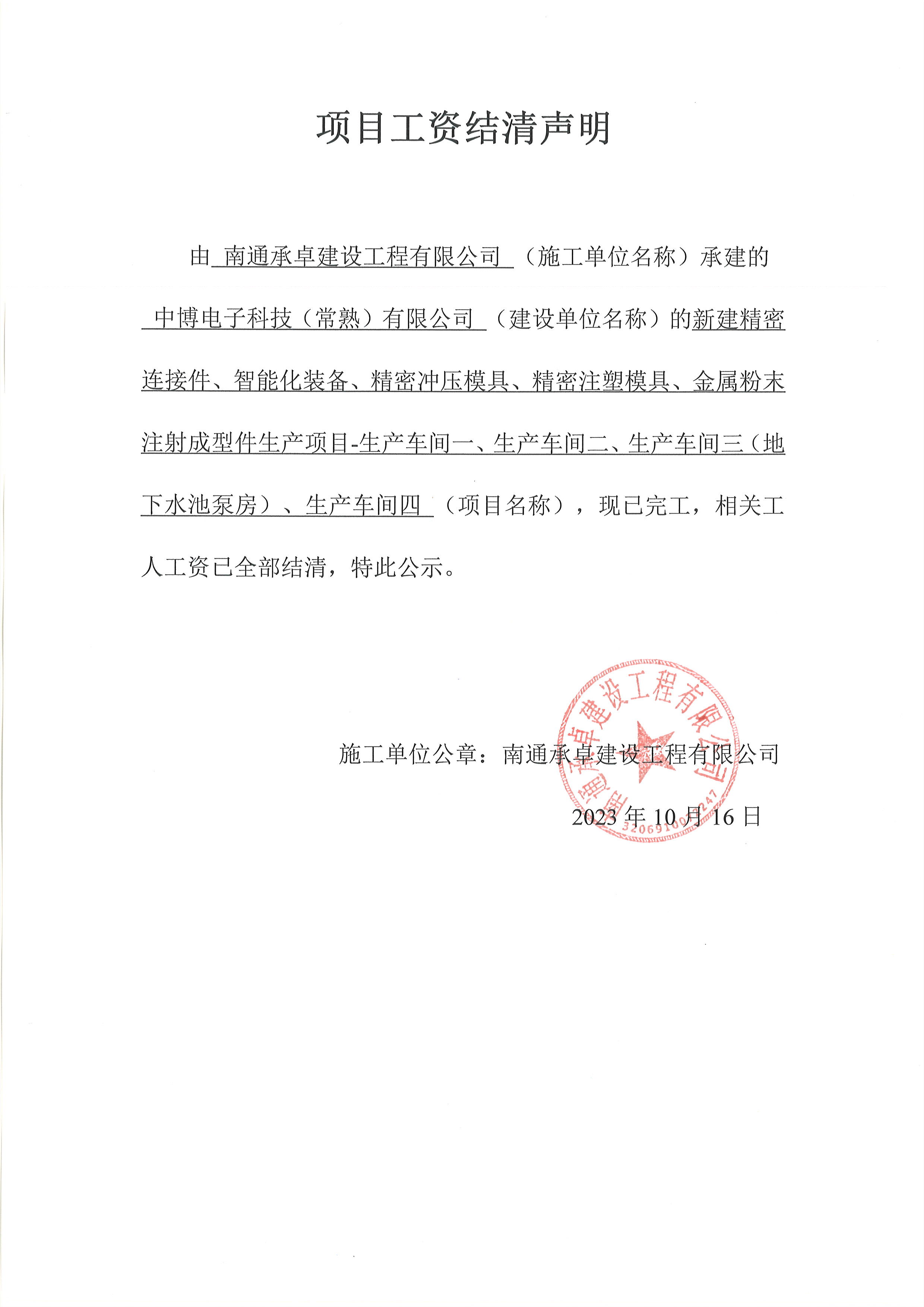 南通承卓建设工程有限公司