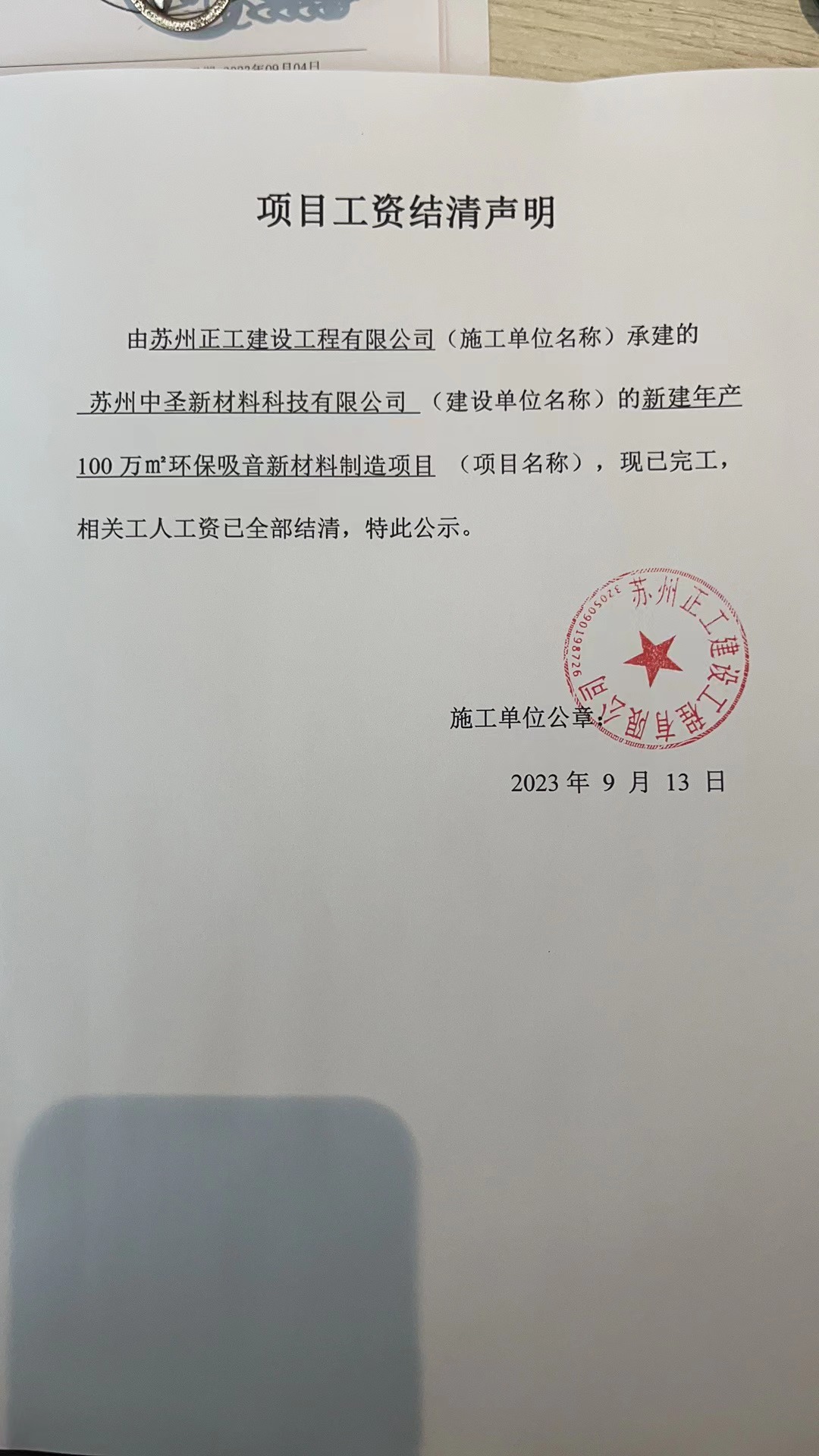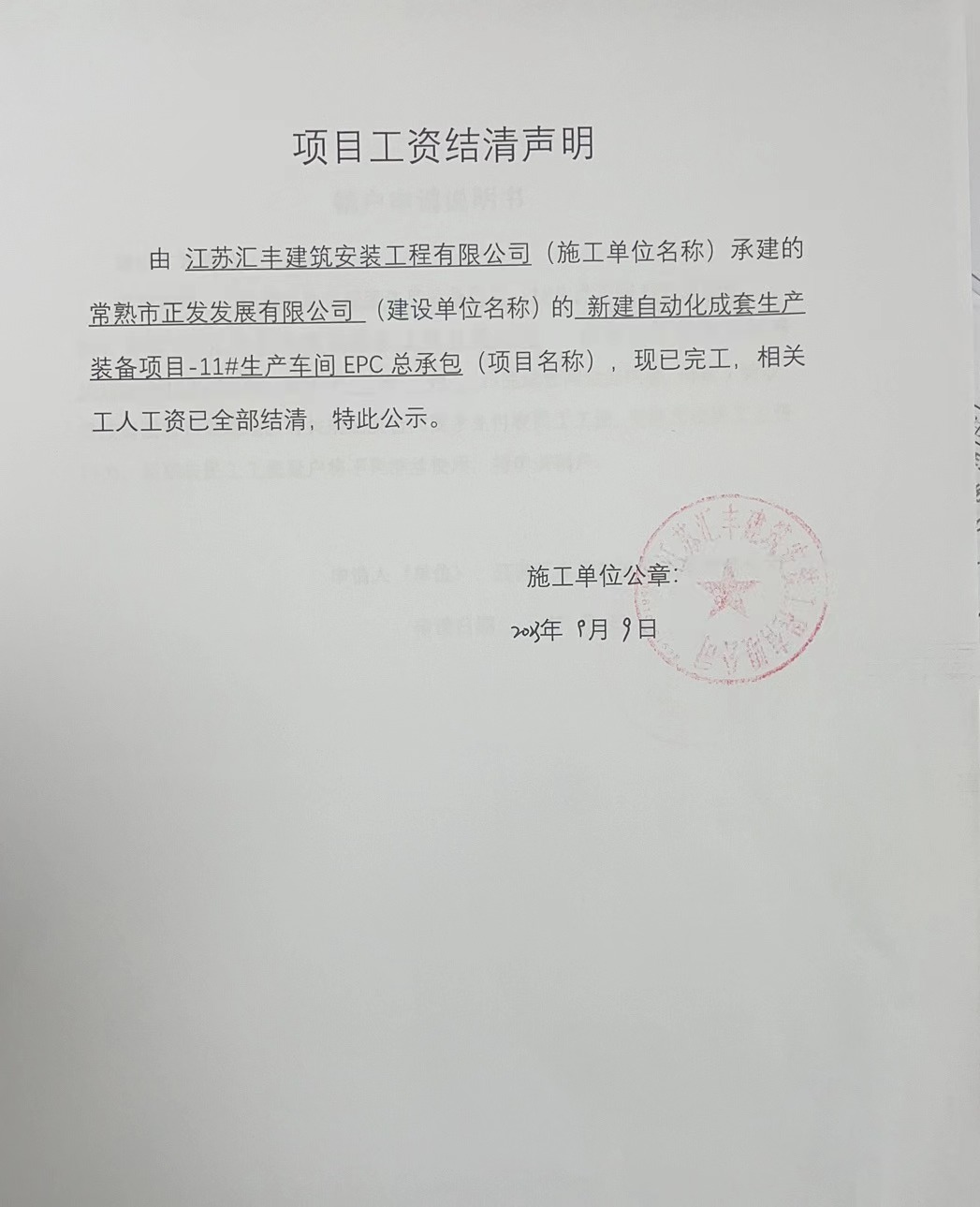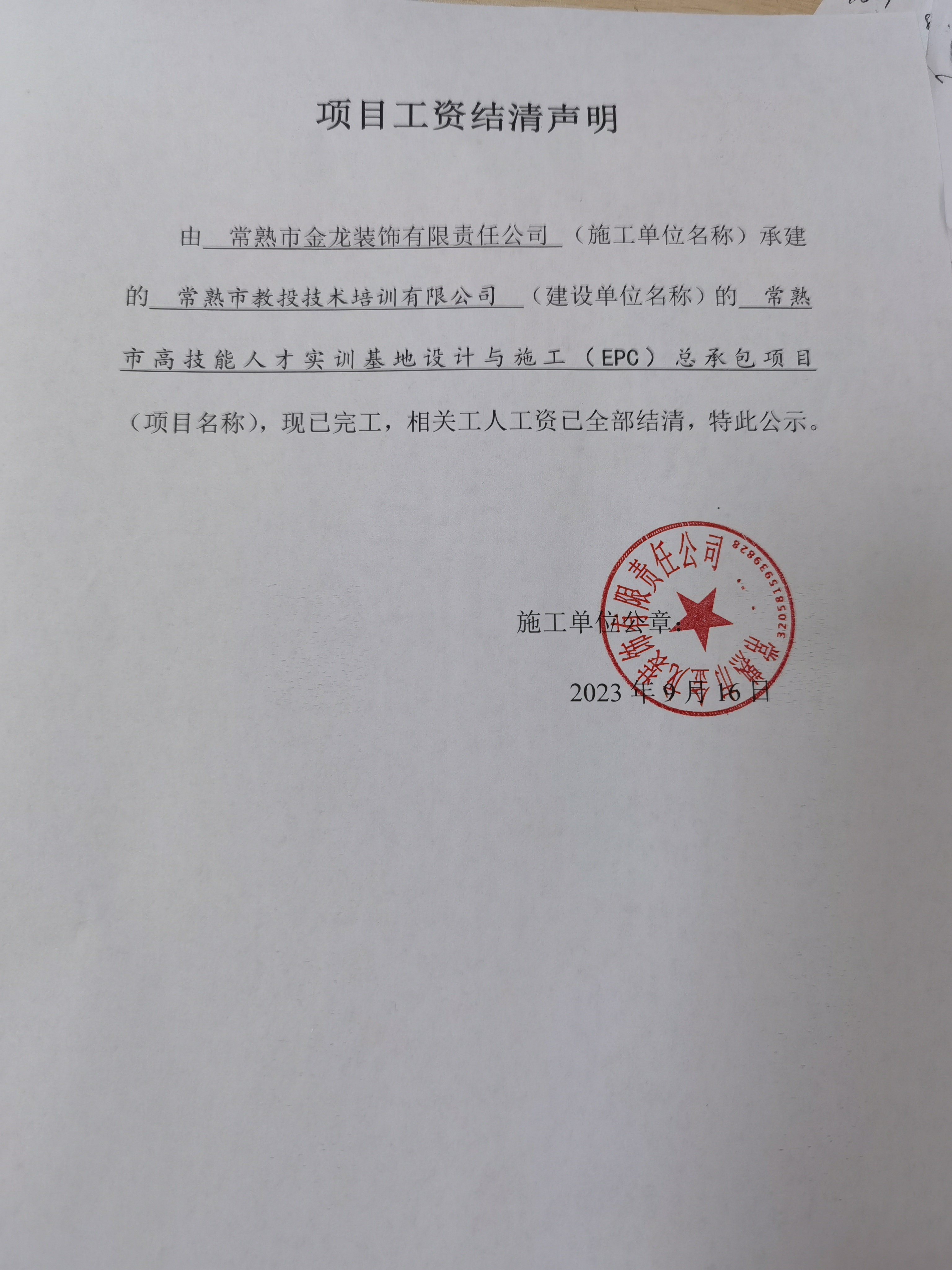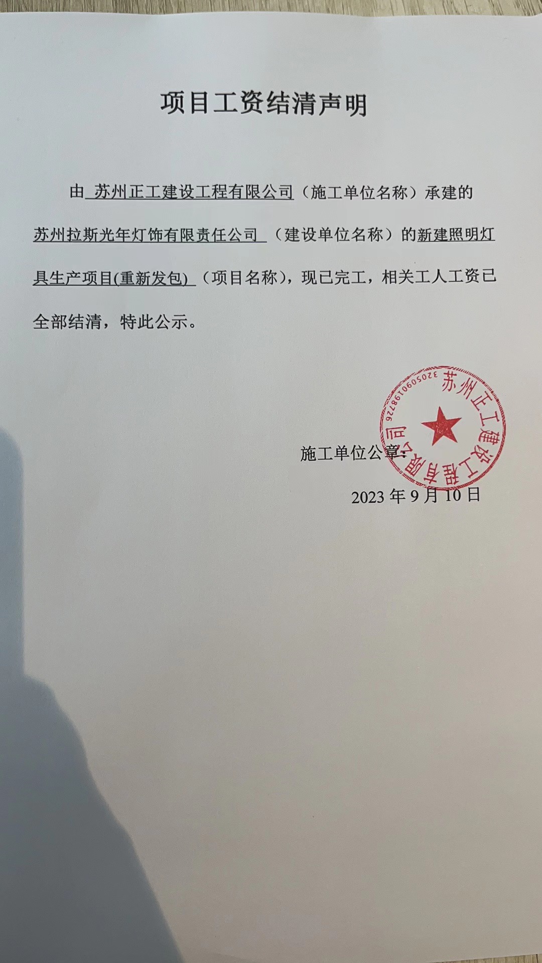 项目工资结清支付公示