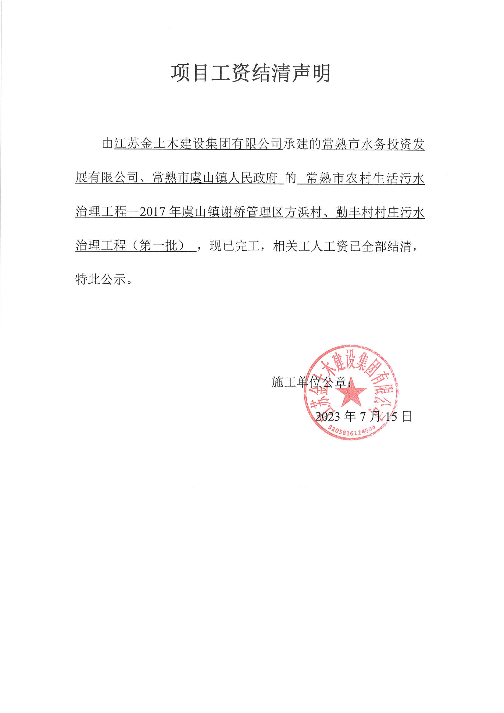 常熟市农村生活污水治理工程—2017年虞山镇谢桥管理区方浜村、勤丰村村庄污水治理工程(第一批)