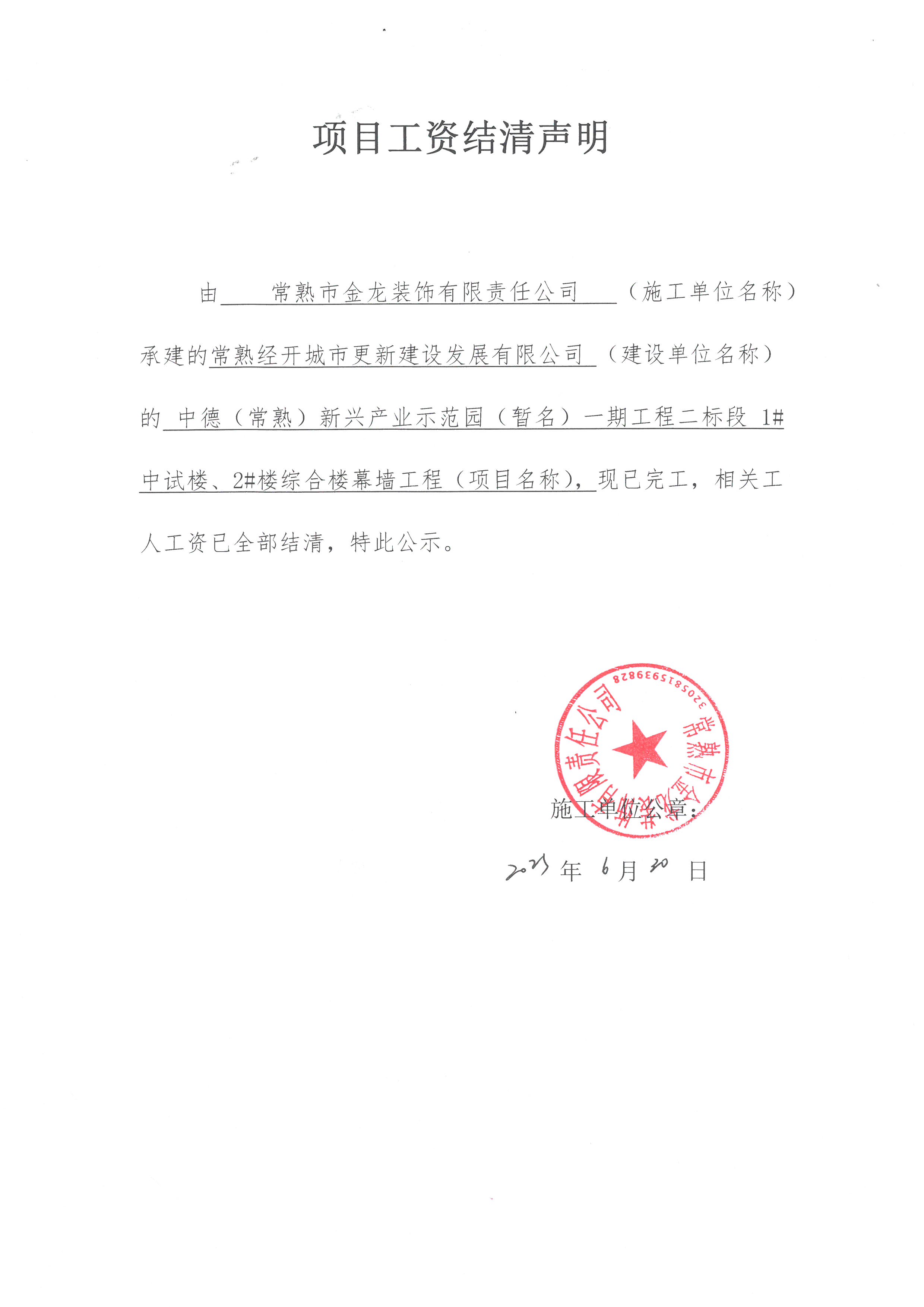 中德(常熟)新兴产业示范园(暂名)一期工程二标段1#中试楼、2#楼综合楼幕墙工程