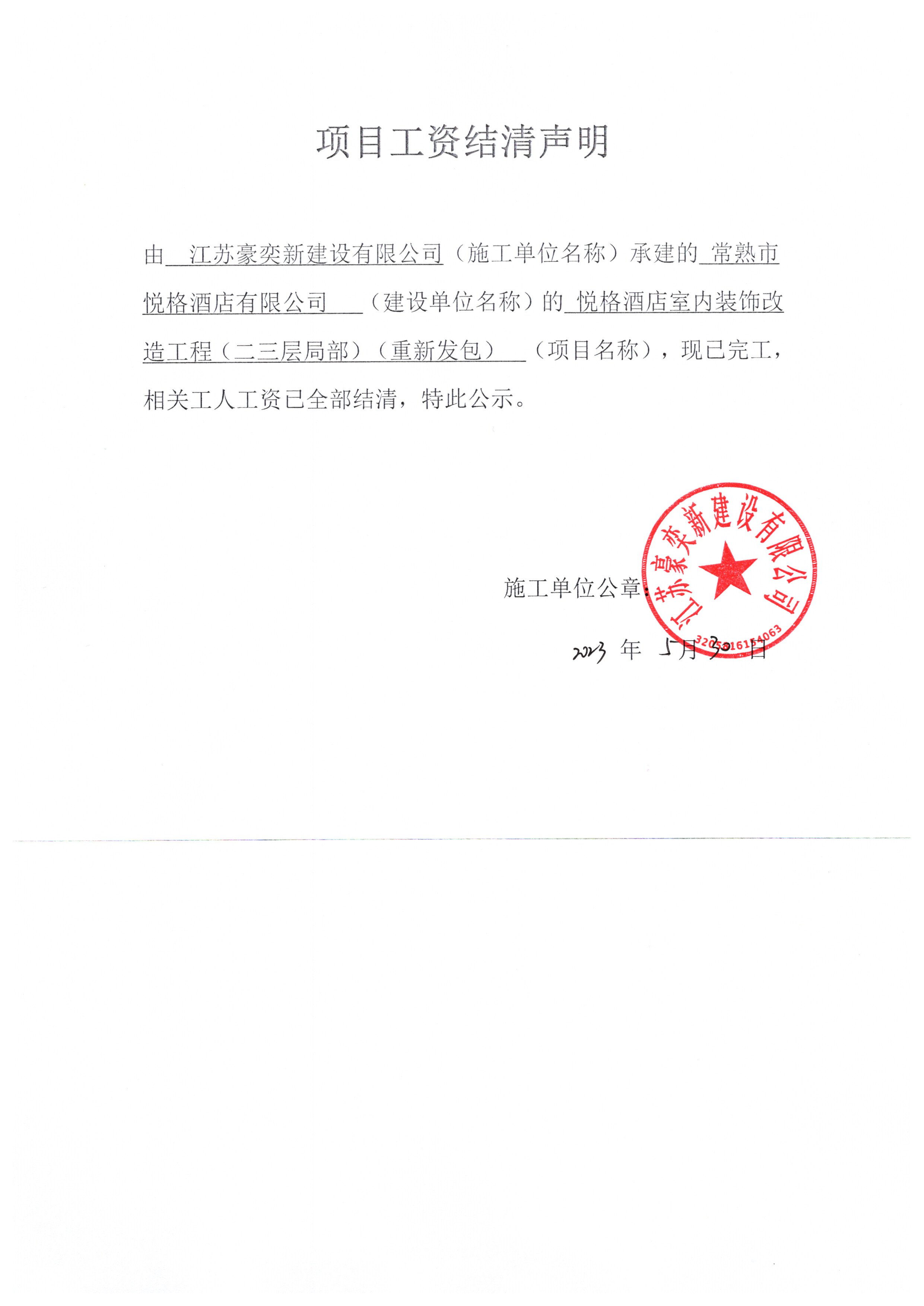 常熟裕美酒店管理有限公司(全季酒店)装饰改造工程