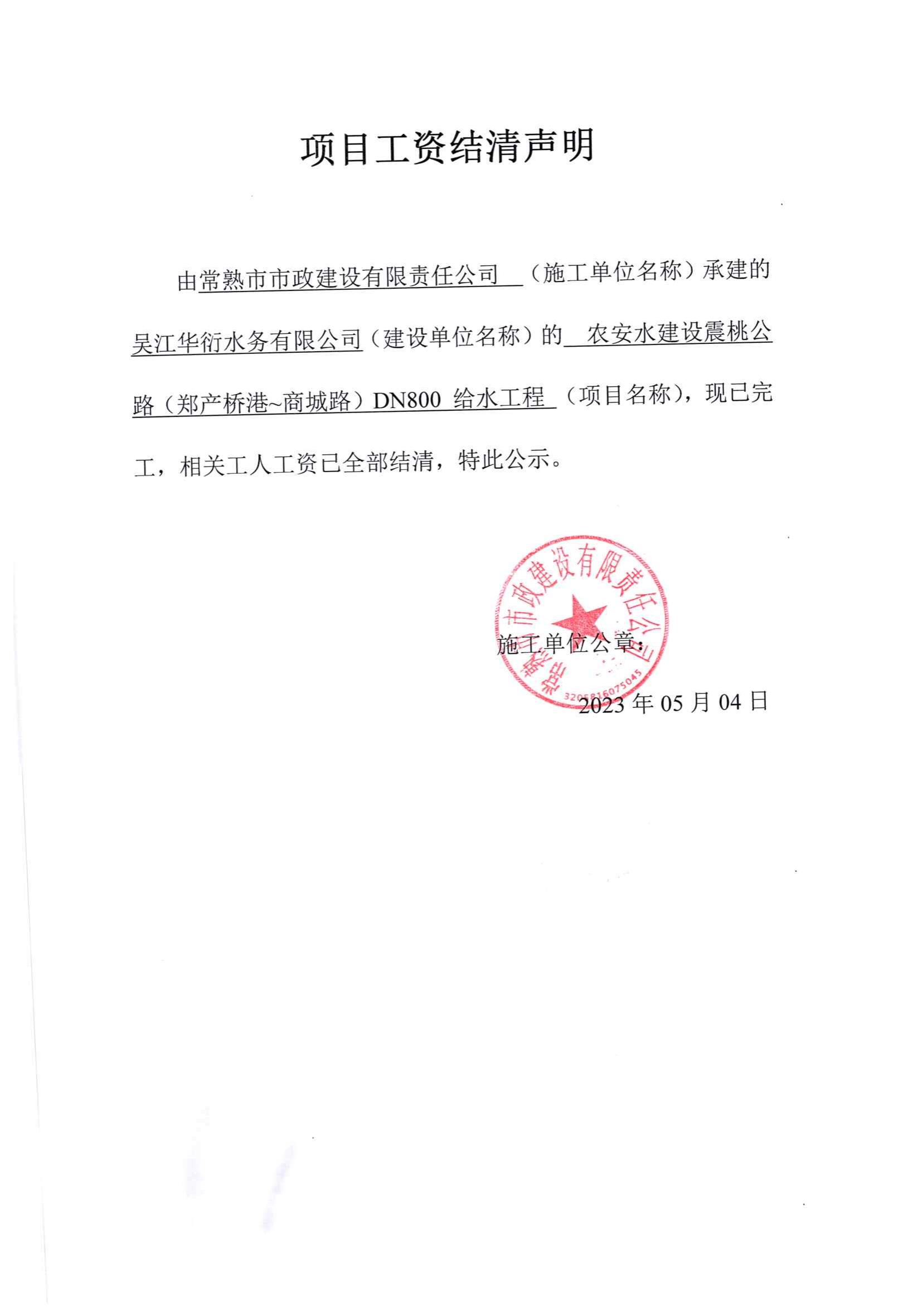 农安水建设震桃公路(郑产桥港~商城路)DN800 给水工程