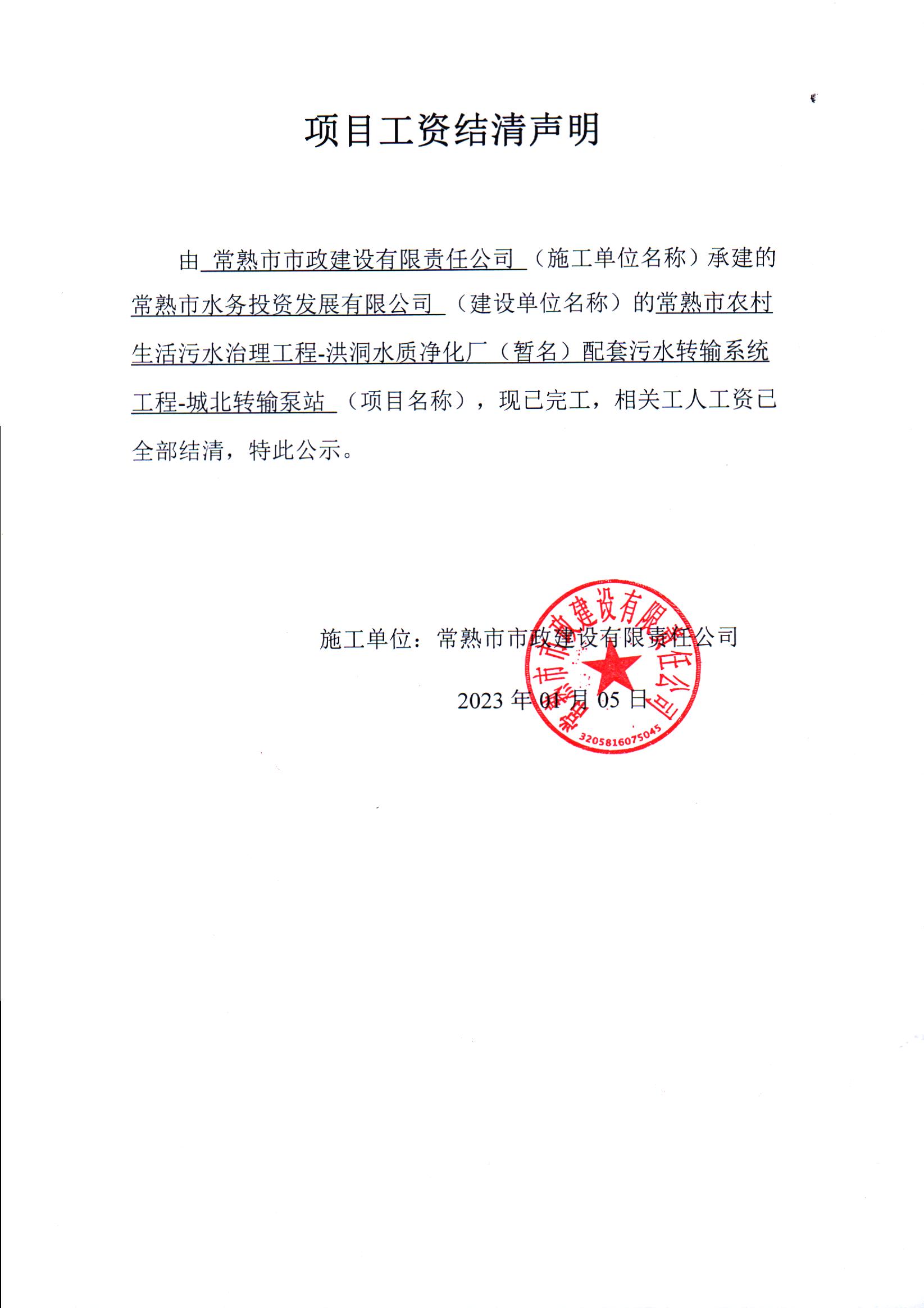 常熟市农村生活污水治理工程-洪洞水质净化厂(暂名)配套污水转输系统工程-城北转输泵站