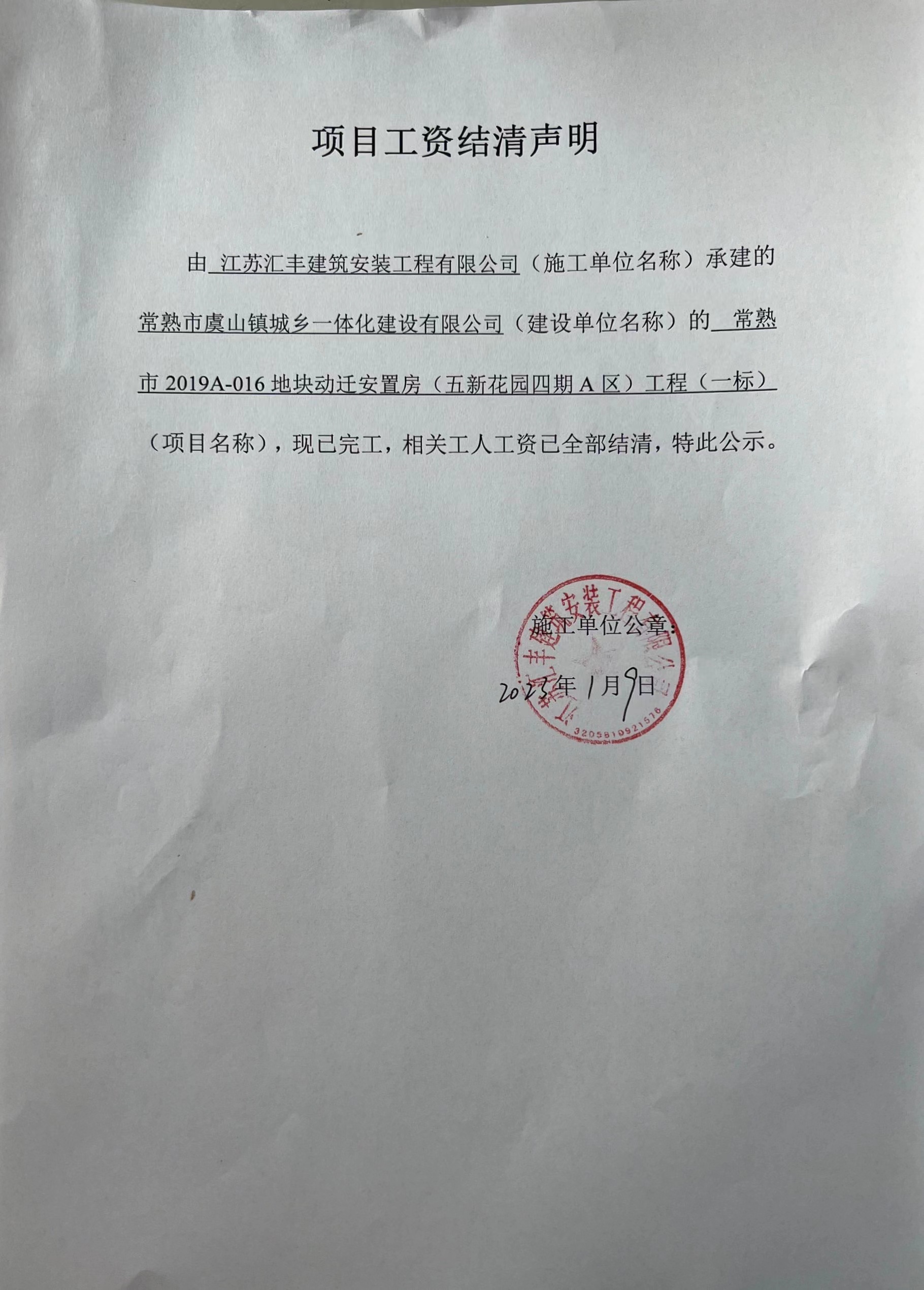 常熟市2019A-016地块动迁安置房(五新花园四期A区) 工程(二标)