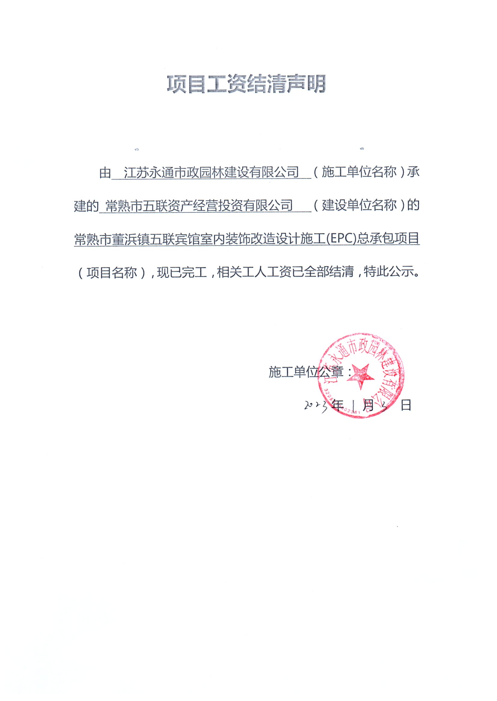 常熟市董浜镇五联宾馆室内装饰改造设计施工(EPC)总承包项目